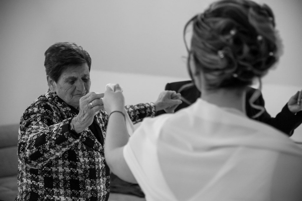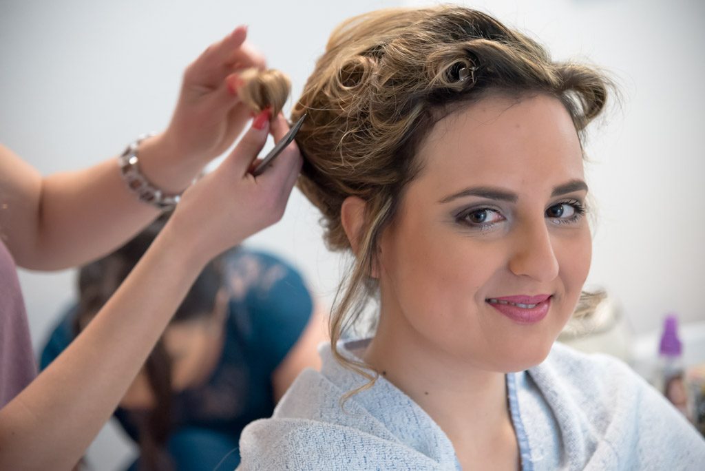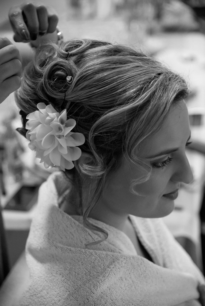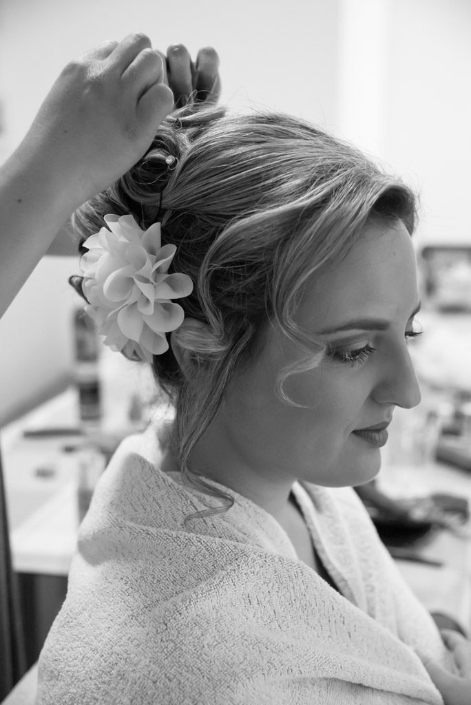 Bei dieser Hochzeit habe ich auch einen Einblick in die Vorbereitungen nehmen dürfen. Verwandschaft war angereist, griechische Musik lief und ich wurde mit einer freundlichen Art empfangen die mir sehr gefallen hat. Ich fühlte mich auf Anhieb wohl! Die Haare der Braut wurden gerichtet und mit Perlen versehen. Danach wurde erst einmal zu griechischer Musik getanzt. So habe ich es mir vorgestellt, dabei hab ich im Grund keine Ahnung von Griechenland. Aber wenn mich einer gefragt hätte wie Griechen tanzen, dann hätte ich geantwortet: „Genau so!“.