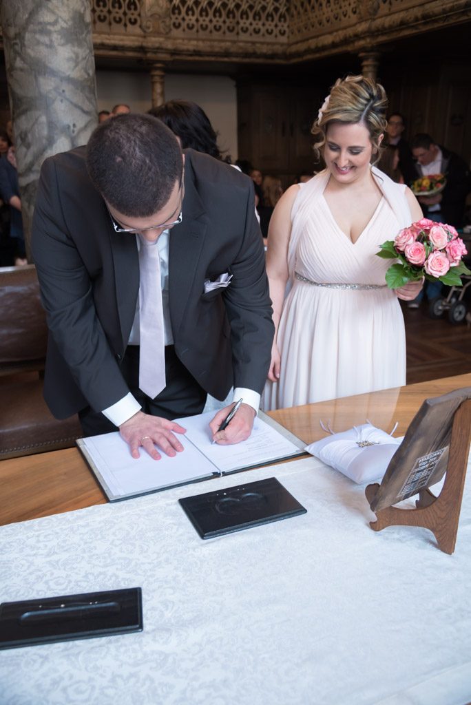 Das alte Archiv im historischen Rathaus das nun als Trausaal benutzt wird, war brechend voll. Es dauerte eine ganze Weile bis alle Gratulanten bei dem Brautpaar waren. Ich könnte mir vorstellen das es dem Standesbeamten die Zeitplanung etwas zerschossen hat, dieser blieb aber Professionell ruhig. Immerhin waren an diesem Samstag noch einige weitere Trauungen. Speyer machte seinem Ruf als Hochzeitsstadt an diesem Tag wieder alle Ehre.