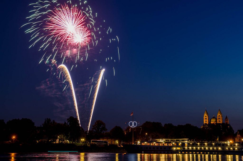Alles geht vorbei, auch das Brezelfest in Speyer und zum Abschluss gibt es dann immer ein Feuerwerk. Wenn ich es mir so recht überlege, habe ich es erst das zweite mal abgelichtet. Der Standort war auf der gegenüberliegenden Rheinseite bei Kilometer 400. Um 22 Uhr sind wir dort angekommen, der Kiesstrand war schon gut besucht. Bevor wir zum Wasser gelaufen sind wurde erst einmal Insektenschutz aufgetragen, flächendeckend. Denn es gibt nichts nervigeres als tausende von Schnacken die nach Blut lechzen. Am Ufer hatten wir Glück und ein guter Standort war frei. Ich habe, warum auch immer, nur mein kleines Leichtes Stativ mitgenommen, also war Knien angesagt. Nach dem vorbereiten hatten wir noch Zeit das restliche Publikum etwas zu beobachten. War interessant wie gegen die Mücken gewedelt und geschlagen wurde, wir hätten mit Antistechmückenmittel reich werden können. Einige sind auch ein paar Minuten nach dem kommen wieder abgehauen oder besser gesagt geflüchtet. So ist das nun mal am Rhein.
