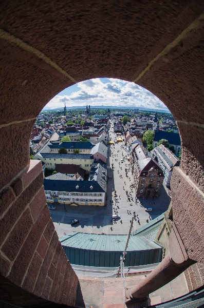 Jetzt heißt es schnell sein, denn es ist und bleibt eine Sehenswürdigkeit, da kommt garantiert bald ein anderer auf die Idee mit dem Fischauge vom Dom zu knipsen. Die Bilder die rausgekommen sind fand ich gleich mal spannend, man muss sich auf die Perspektive einlassen dann vermitteln die Bilder den Eindruck als würde man auf dem Dom – Turm stehen und hinunterblicken. Die Bilder auf dem Domplatz sind auch mal was anderes.