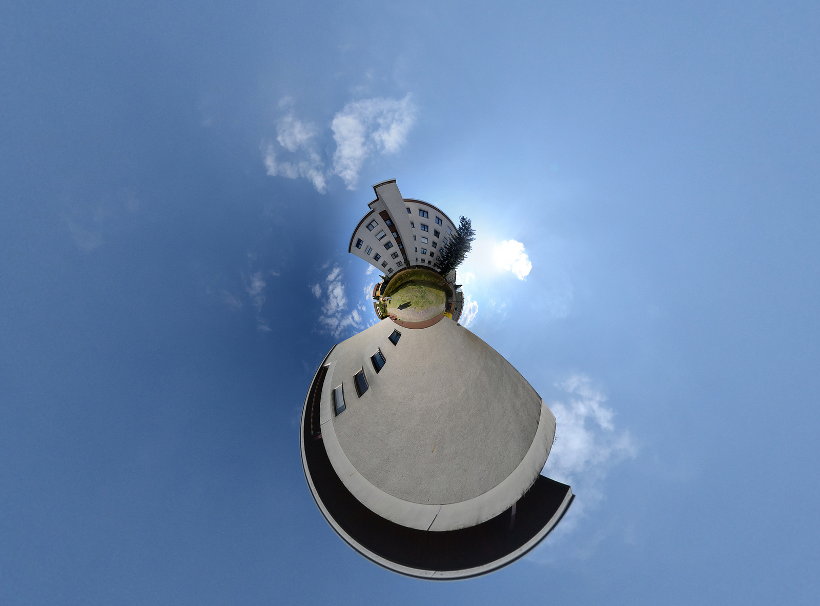 Habe mir in der „elektronischen Bucht“ ein Nikkor Fisheye für DX geschossen. Hatte keine Ahnung wie klein das Teil wirklich ist, dementsprechend groß war die Überraschung als es denn am Freitag letzte Woche bei mir ankam. Dummerweise war das Wetter wie so oft Arschkalt und bedeckt, trotzdem nach Kaiserslautern gefahren um uns auf der Gartenschau die Dino’s mit der kleinen anzusehen. Foto’s hab ich gemacht aber keines mit dem Fisheye, das war alles so trostlos und kalt. Am Sonntag war dann unerwartet Sonnenschein, was ein Glück! Also raus und das Fischeye ausprobiert, gleich vorm Haus in der wärmenden Sonne und ich muss sagen, Little Planets mit dem Fisheye zu fabrizieren ist viel angenehmer, fast schon einfach. Da werden noch ein paar dazu kommen!