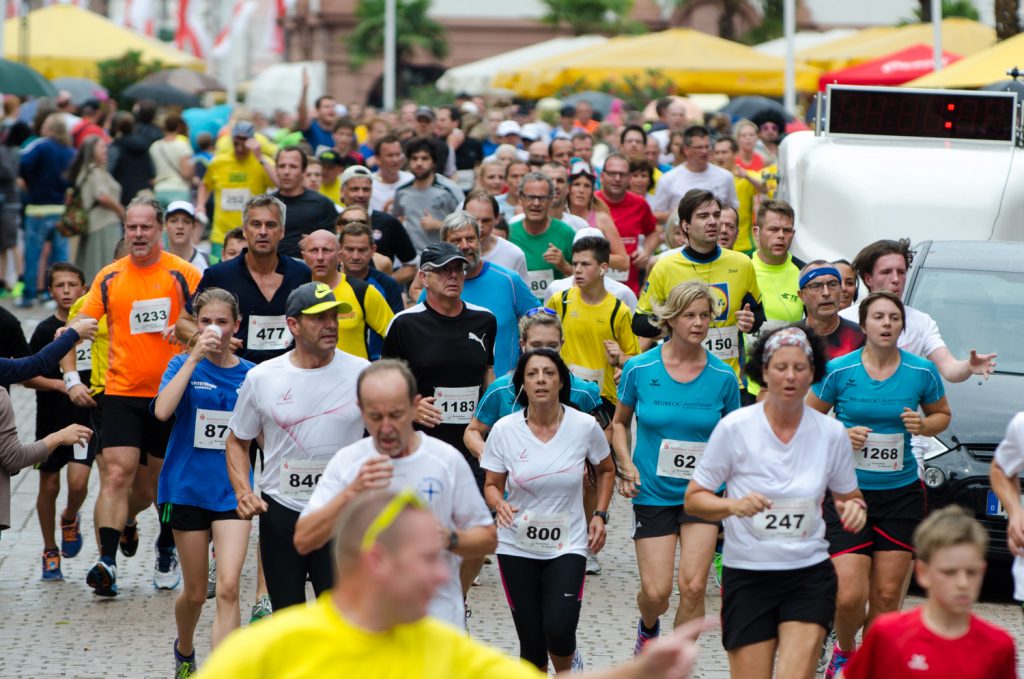 Sonntags gibt es immer vor dem Brezelfestumzug einen Brezelfestlauf, an dem viele Betriebe Teilnehmen. Dieses mal hat es immer mal wieder geregnet. Zum Glück war die VIP Tribüne für den Umzug frei und ich stand im trockenen zum fotografieren. Diese Idee hatten auch andere aber es war genug Platz. Zuerst hatte ich das Nikkor 17-55 drauf und dann das Nikkor 70-200 durch die kleine Blende konnte ich die Schärfe schön platzieren.