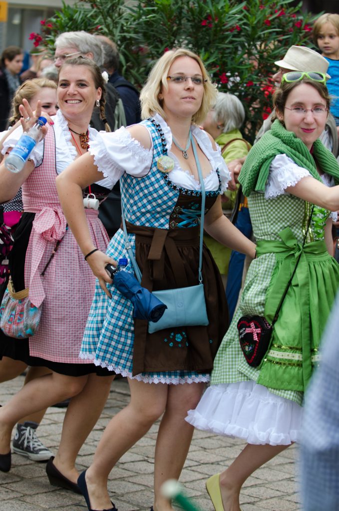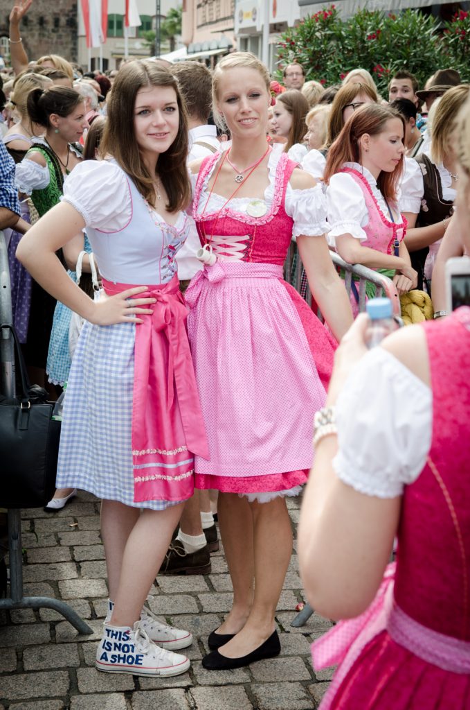 Das Brezelfest in Speyer ist für die Wohlfühlstadt ein Großereignis. Bei diesem Volksfest ist der ganze Festplatz mit Fahrgeschäften und Gastronomie-Betrieben ausgefüllt. Um das ganze noch attraktiver zu gestalten wurde im letzten Jahr ein Weltrekord mit den meisten Dirndel-Trägerinnen aufgestellt. Dieses Jahr sollte es die längste Polonaise mit Dirndel-Trägerinnen sein. Die Domstadt rief und die Dirndeln kamen, der bestehende Weltrekord wurde gebrochen. Die Aufstellung zur Polonaise war vor dem Altpörtel. Ein lustiges Völkchen das sich einstimmte auf den bevorstehenden Erfolg. Am Ende waren es 2697 Trachtenträgerinnen und Träger. Gerade 33 Trachten mehr als 2013 bei der Faschingspolonaise in Nürnberg.